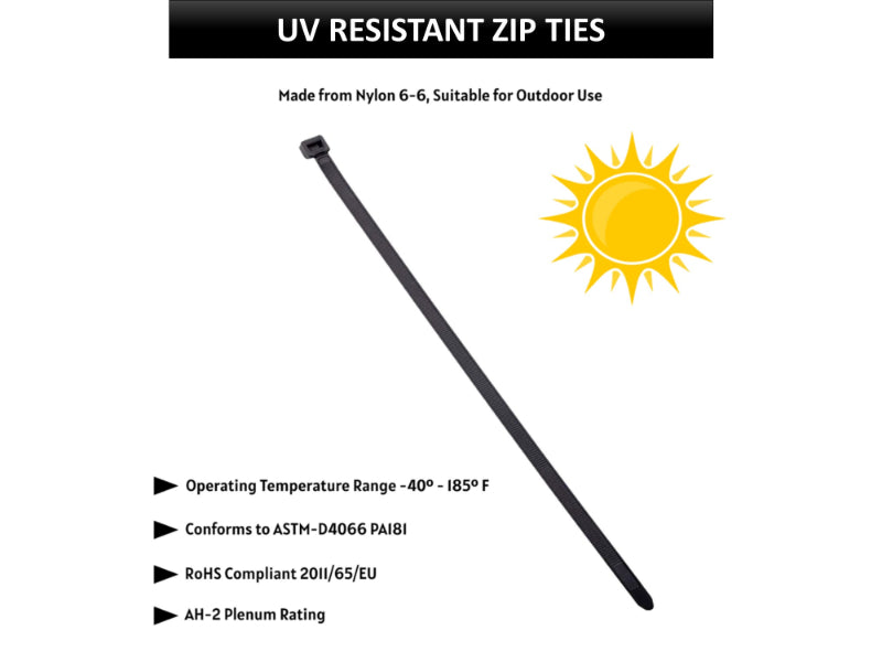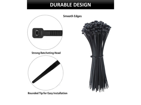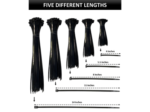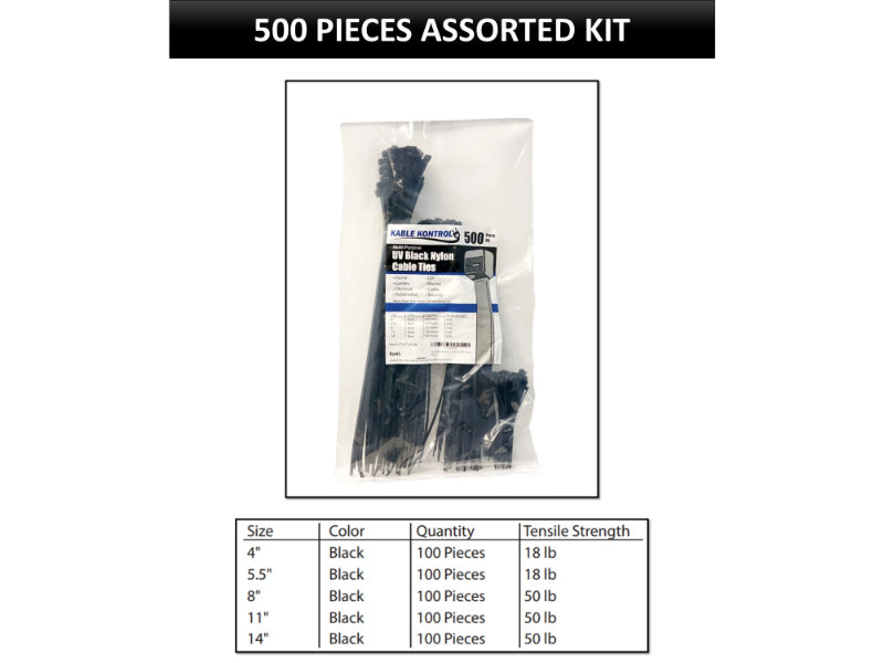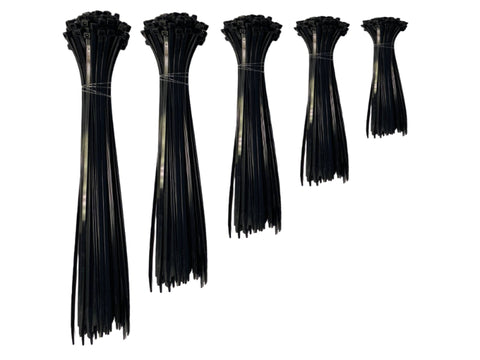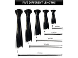 Assorted Size Cable Zip Ties Kit - UV Resistant Nylon - Black - 500 Pcs Pack