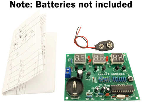 Requires one 9V battery for operation. One CR2032 button cell battery can also be used as a backup to save the time when replacing the main battery. Batteries not included.