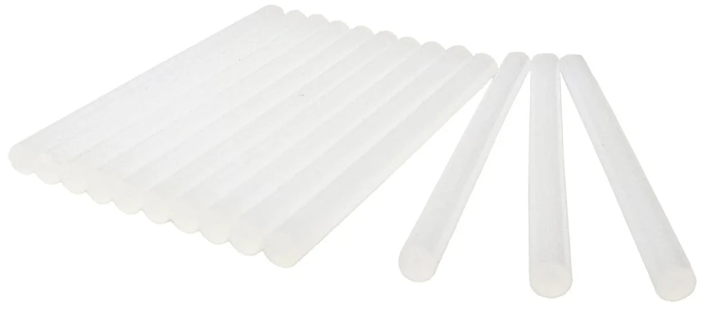 Surebonder DT-12 is a 12-pack of mini-size (5/16”, 0.27”) diameter by 4" long clear all-purpose glue sticks. These mini glue sticks work with all standard mini-size glue guns and will work for all-temperature (high, low, or dual temp) projects. Surebonder Clear Stik hot glue sticks dry clear to cloudy white in about 45 to 60 seconds. These glue sticks are perfect for everyday crafts, DIY projects, or household repairs. This product is proudly manufactured, quality tested, and packaged in Wauconda, Illinois, USA - with domestic and globally sourced materials. These hot glue sticks are non-toxic and conforms to ASTM D-4236.