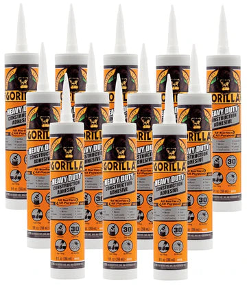 Gorilla Heavy Duty Construction Adhesive is a tough, versatile, all-weather adhesive. The 100% adhesive formula provides a long-lasting, heavy duty bond. We call it All Surface, All Purpose*. The gap-filling, durable, 100% waterproof adhesive formula is perfect for indoor and outdoor projects, holds in 30 seconds, and bonds virtually anything including subfloor, mirrors, trim, drywall, landscaping, bath surrounds, foamboard, marble and more!