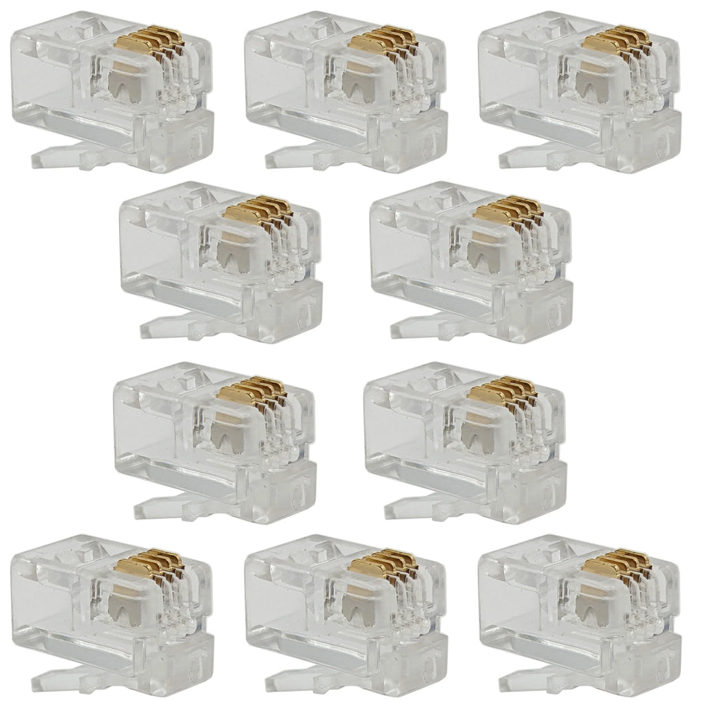 10 Pack RJ11-4 Modular Plugs, 6P4C, Twisted Stranded Wire