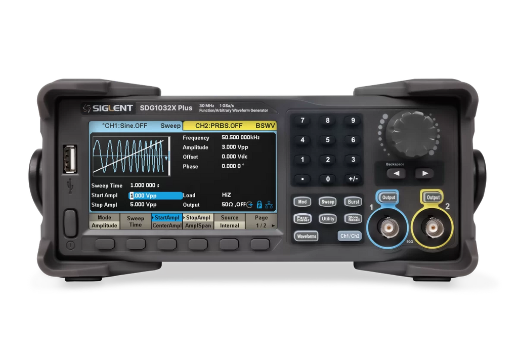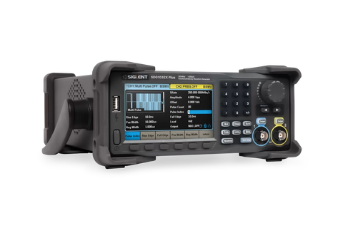 The Siglent SDG1000X Plus is a dual channel, function/arbitrary waveform generator. It features 16 bit vertical resolution, a maximum sampling rate of 1 GSa/s and is available with a maximum frequency ranging from 25 to 60 MHz. Based on traditional DDS technology (direct digital synthesis), the innovative TrueArb and EasyPulse technologies are used to overcome the inherent defects of DDS in outputting arbitrary waveforms and square waves/pulses.
