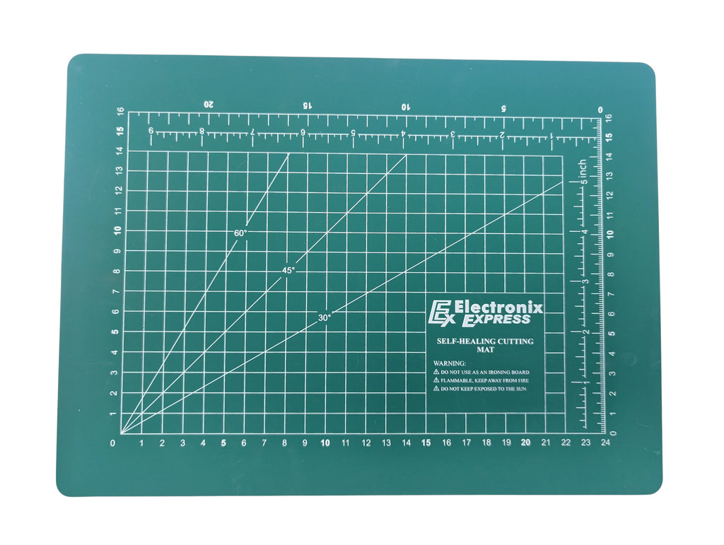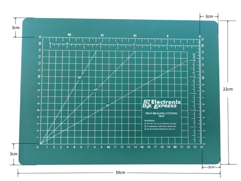 - Grid lines measure 14 cm x 22 cm (Full size of mat is 22 cm x 30 cm) 30°, 45°, and 60° angle guides