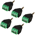 Stereo Plug 3.5mm Male Jack to 3 Pin Screw Terminal Connector - 5 Pieces/Pack