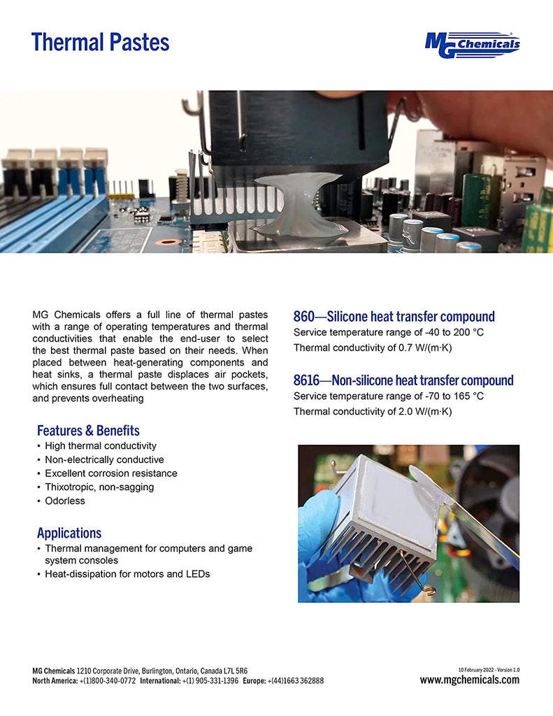 8616 is a thermal compound with excellent thermal conductivity. This thermal conductive grease is designed to conform between irregular surfaces when compressed, reducing thermal resistance and improving heat flow.